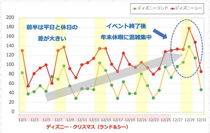 ディズニー混雑予想19年11月12月クリスマス 空いている穴場の日は おちゃこのブログ